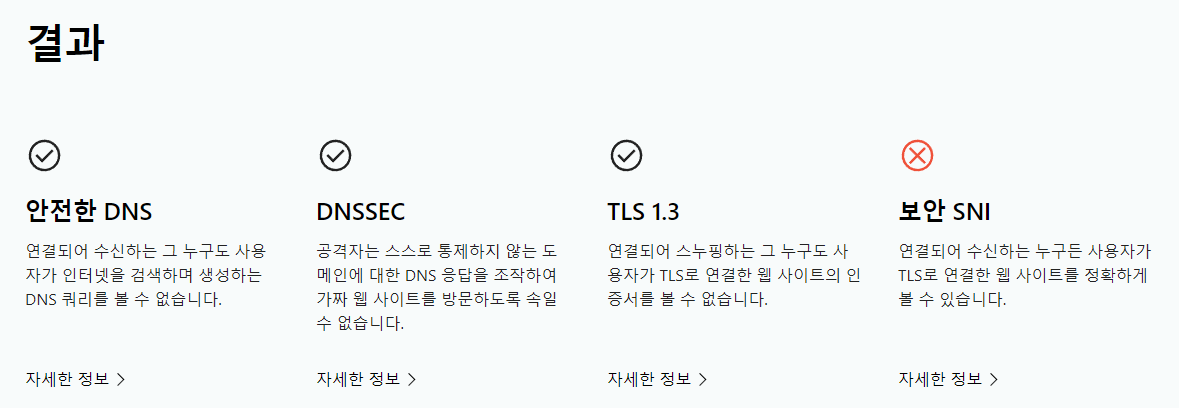 브라우저 DNS 암호화 테스트 결과