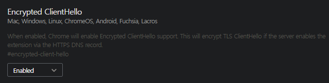 보안 SNI 활성화 방법: whale://flags/ 접속 → Encrypted ClientHello 항목 Enable